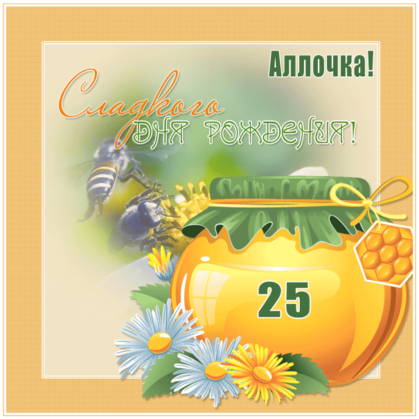 Картинка для Аллы с 25-летием с пожеланием сладкого дня рождения.