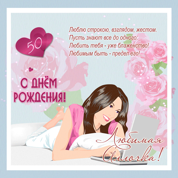 Картинка с 50-летием со стихами и сердечками.