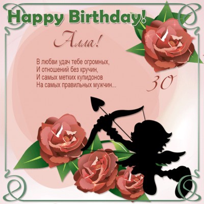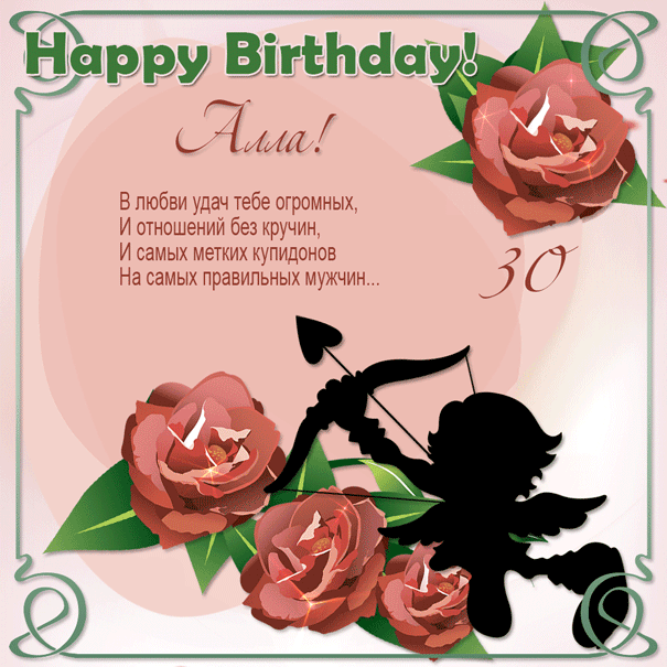 Анимированная картинка Алле на 30 лет со стихами и купидоном.