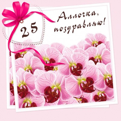 Открытка Аллочке на 25 лет с орхидеями.