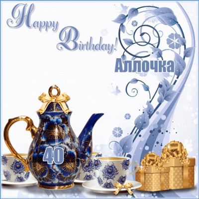 Открытка Аллочке с 40-летием с чайным сервизом.