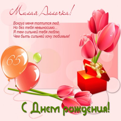Картинка с тюльпанами на юбилей 65 лет для Аллочки.